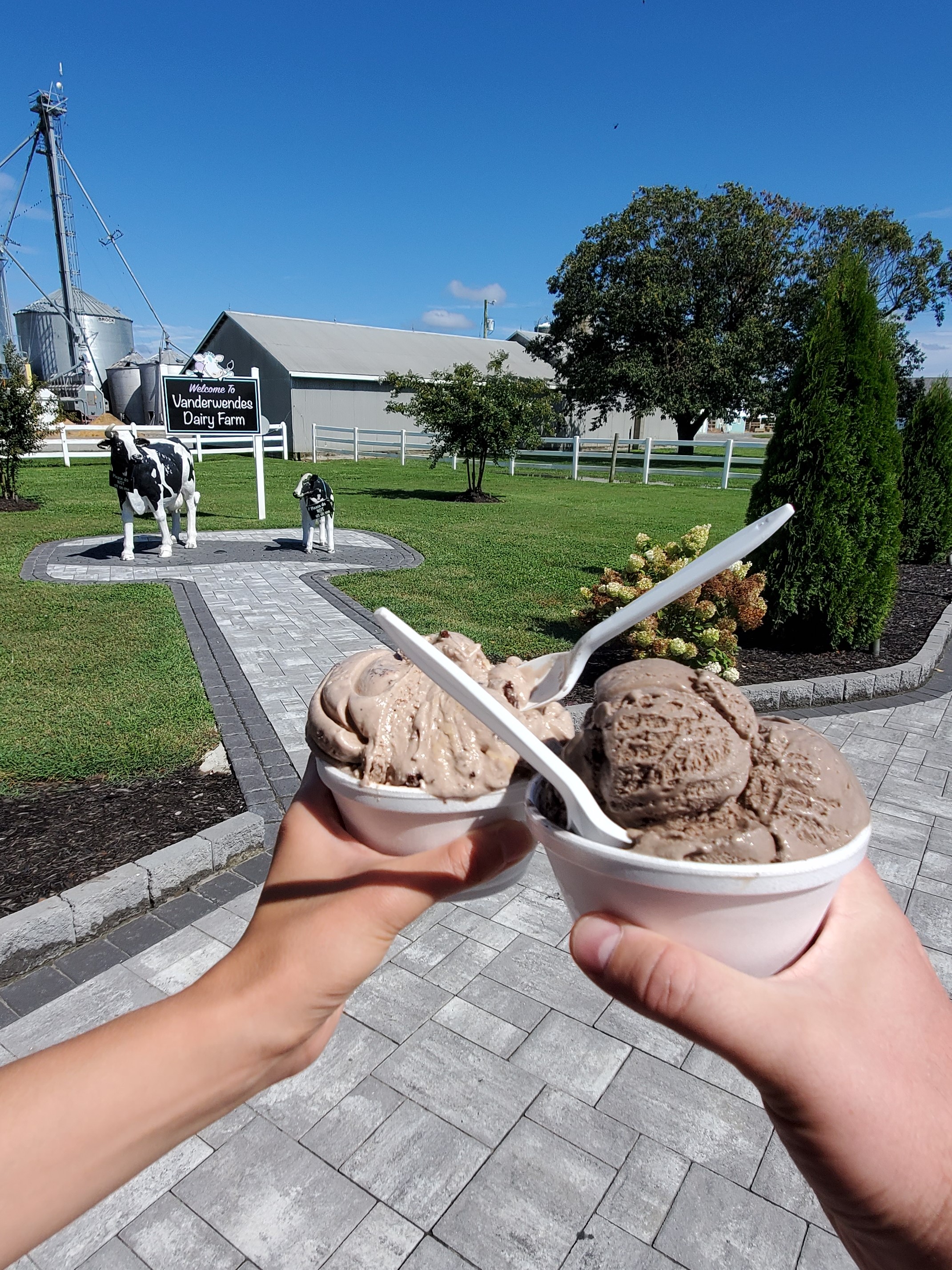 Then next day, I was again surprised to see so many cornfields as we drove through the countryside. I wanted to see a little more of Delaware before we went over to Maryland, so we drove a little farther south to Greenwood before heading west. As we were driving along, our van was suddenly filled with the most scrumptious smell and we wondered what it could be. We looked to our left to see a couple of men roasting some chicken, so we turned into the parking lot and made a wonderful discovery. Some teens from a local Kiwanis club were selling roast chicken lunches for a fundraiser. We were so delighted, we couldn’t resist buying a couple of lunches, which included half a roast chicken, pickles, a roll, Herr’s chips and a drink. The chicken was perfectly seasoned and so tender. We were in chicken heaven! Before we left, we noticed a small sign next to the Kiwanis Chicken Bar-B-Que sign that simply said “They’re Ready.” How hilarious! It was such a happy accident that we just happened to pass by this chicken stand at just the right time. As we continued driving just a minute up the road, we stopped at the adorable Vanderwende Farm Creamery for some thick and delicious ice cream. They have a large variety of gourmet flavors, as well as other goods in their store for purchase. It was clearly a popular ice cream spot since there were so many Maryland license plates in the parking lot. I’m so glad we took the longer route because otherwise we never would have stumbled upon these two local gems. Delaware was such a treat!