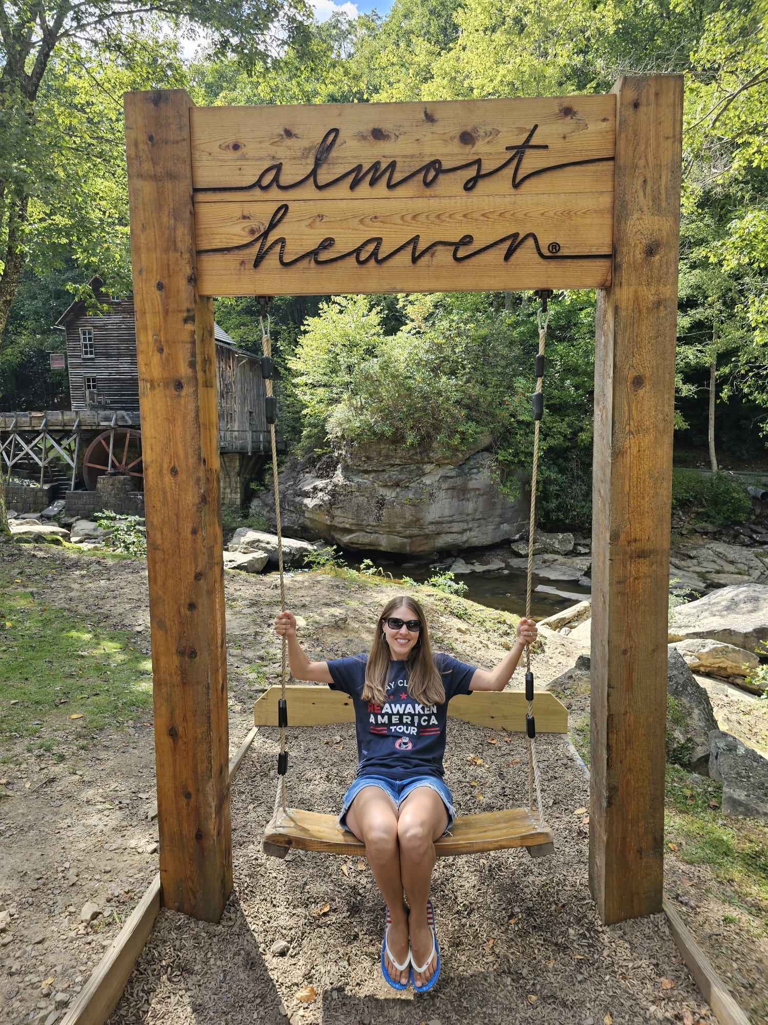 Our first stop in West Virginia was in the town of Lewisburg near Fairlea for some Blizzards at Dairy Queen. The young man who took my order gave me a discount on both of our ice creams, which was such a blessing! We savored our sweet treats as we made our way up to the campground at Babcock State Park in Clifftop. We enjoyed sitting by the fire in the cool mountain air and spotlighting deer through the trees on the hill next to our campsite. The next day, we explored the Glade Creek Grist Mill. The beautiful creek has little waterfalls and large pools of water where you can walk on the rocks out into the middle. They also have a gift shop and some fun West Virginia signs where you can take photos as well. Then we drove up the hill to Boley Lake. The water was so tranquil. It looked like a perfect place to swim, so we were surprised to find a sign that said “No Swimming.” As we walked along the path near the water wondering why they didn’t allow swimming, I looked down to see a medium-sized snake swimming underwater. I was startled and pointed it out to Gabe, so we immediately knew the answer to our question… yikes! We also saw some snake skins along another side of the lake. We are so used to being able to safely swim in lakes back home, but in other parts of the country, swimming is not always safe. Snakes or not, we still drank in the undeniable beauty of this quiet mountain lake that we pretty much had to ourselves. We camped one more night at Babcock, then drove through the city of Beckley, which was clean and neat with a little rustic charm. We didn’t stop there because we were short on time, but we did enjoy the remaining country scenery as we made our way to Virginia and then on to Tennessee. “Almost Heaven, West Virginia” is such an appropriate way to describe the endless mountains of this beautiful state.