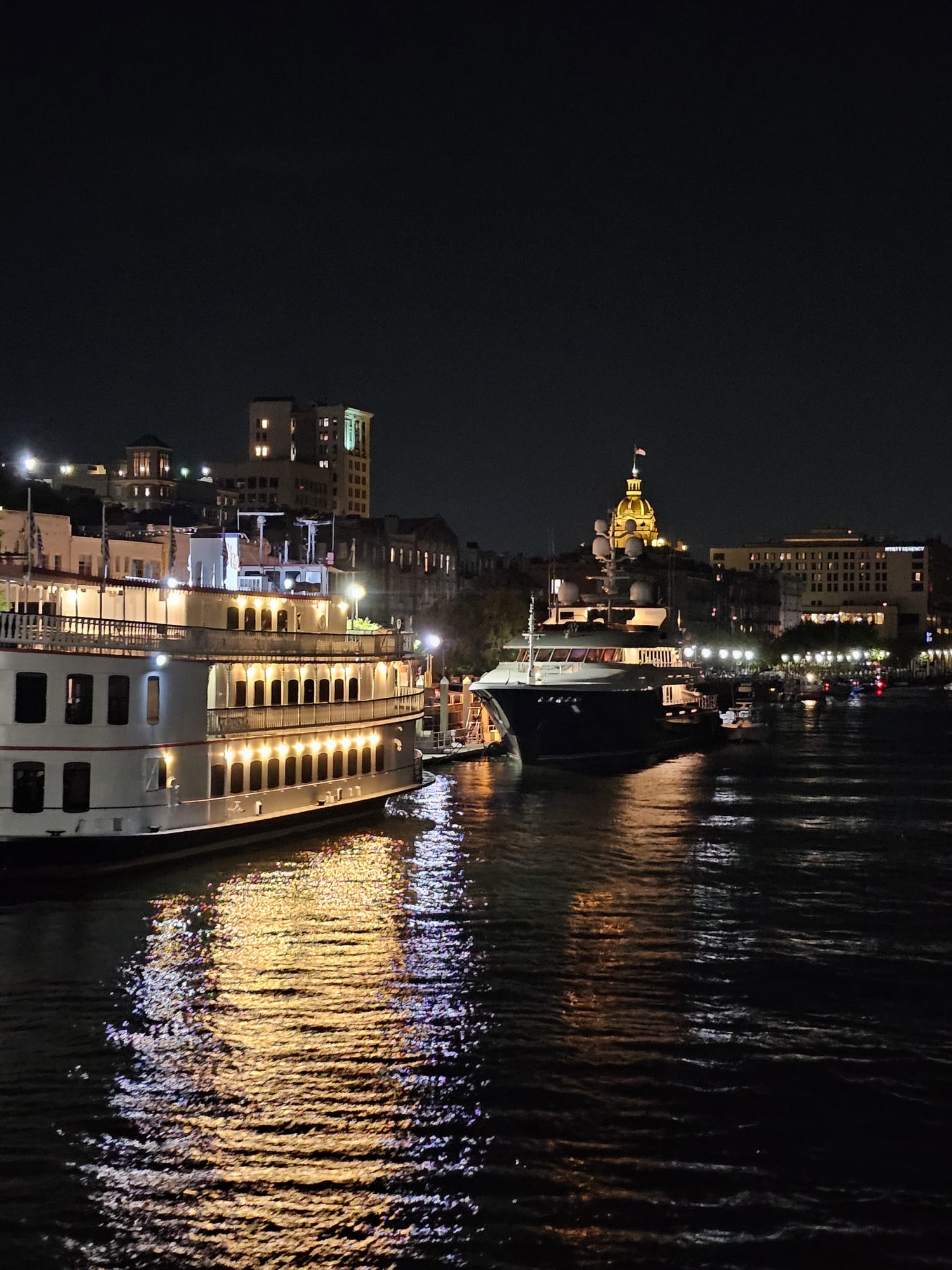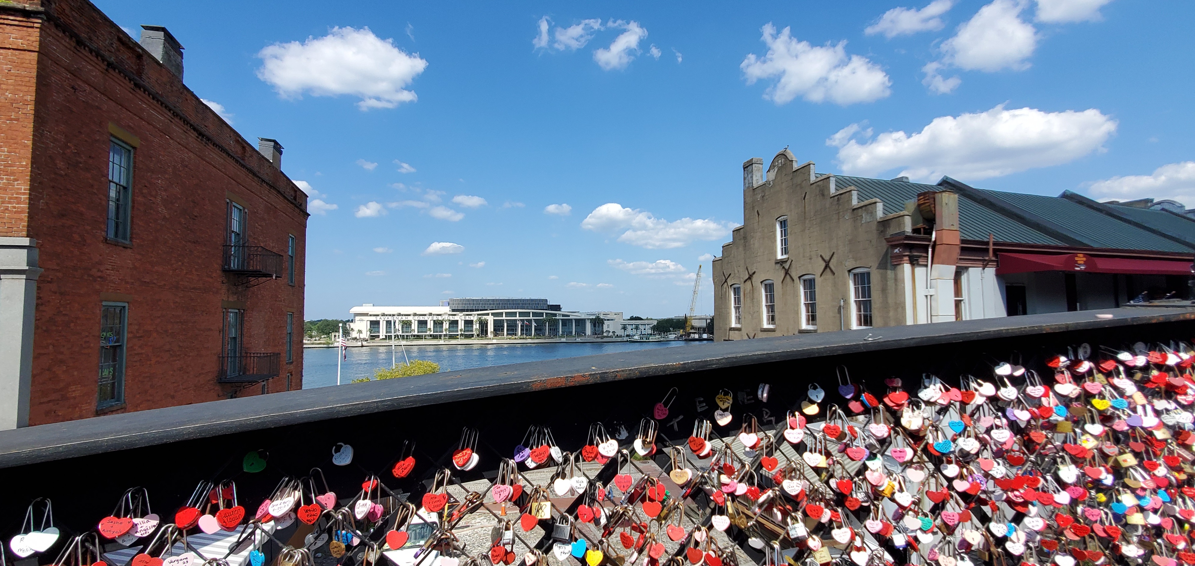 Savannah easily became one of my favorite cities on the trip, and was a close second to Charleston. We found many of the beautiful qualities we loved about Charleston, to be present in Savannah as well, such as: cobblestone streets, horse-drawn carriages, Spanish moss hanging from the trees, real fire lanterns, palm trees, decorative iron fences, climbing vines and so on. Savannah has its own distinct flavor though. Two important themes of the city stood out to me: the Savannah River and live music. We only had time to explore the North Historic District and the Plant Riverside District that leads down to the river. An old brick city wall runs parallel to the river, giving it a distinct old-world port feel. Many of the buildings facing the river are also made of brick, which looks more rustic compared to the polished look of Charleston. Restaurants and shops line the river, giving it a fun atmosphere. Live music from street performers can be heard all over this part of the city. We heard some people singing acapella and others playing instruments, like the saxophone. Apparently, some musicians are territorial about their spots, as we witnessed one man (who was clearly demon-possessed) scream at another man, who was singing beautifully, for taking “his spot.” That was wild! We found a bluegrass band called Swamptooth playing along the waterfront, so we stopped to listen for a while. We joyfully sang aloud and worshiped with the crowd to the song “I Saw the Light.” The phrase that came to me for this city is: “Savannah is a sweet tune in the Lord’s ear.” I also heard the Lord name it “Sweet Sound Savannah.” I believe the Lord wants to bring forth a new worship movement from Savannah. How exciting!