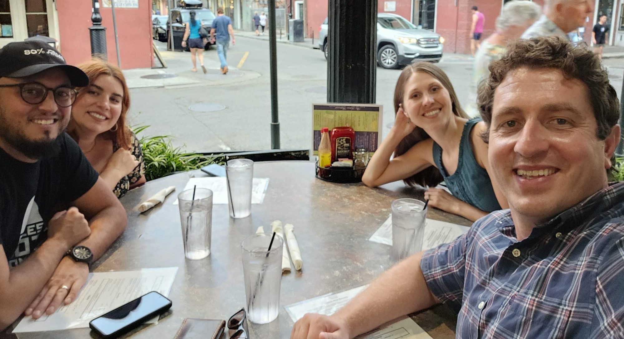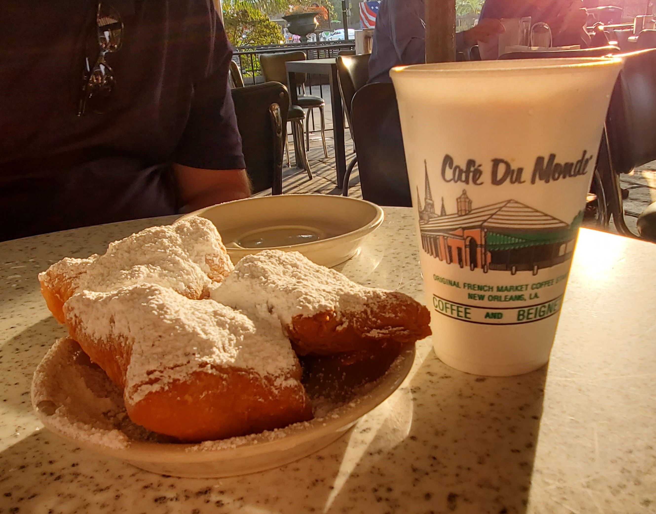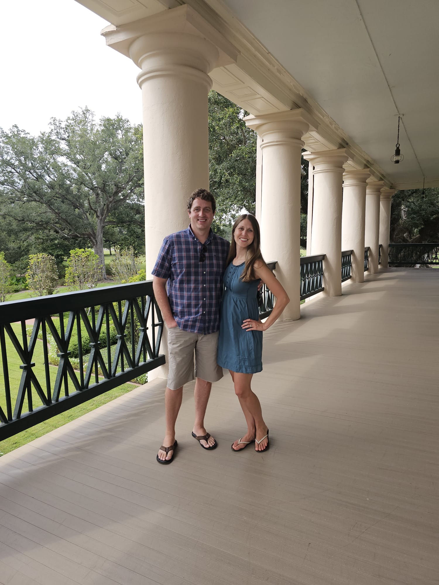 Louisiana: is a “harvest field.” Even though we have been to Louisiana before, we had never visited New Orleans or anywhere south of the city. It is truly another world down there! With the strong French and African influences on the culture and the swampy terrain with water everywhere, I almost felt like I was in another country. We definitely experienced some level of culture shock. With that said, I actually really loved this part of the country because it is so unique and I would love to go back again in the future. When we entered Louisiana, we crossed Lake Pontchartrain on the I-10 bridge and drove into downtown New Orleans. I immediately noticed a lot of graffiti on the buildings and small, colorful Old World style houses with shutters. We drove through the French Quarter, which was so impressive with the multi-storied balconies that wrap around its colorful buildings. The fancy and ornate wrought iron railings border each story’s balcony. We drove around for a bit before we found a side street we could park the van on. As we walked around the French Quarter, I noticed this area of the city has so many of the features I love about Charleston and Savannah. I could see real fire lanterns and trailing plants hanging from the sides of the buildings. As we found our way to the charming Jackson Square with the elegant St. Louis Cathedral in the background, we saw horse-drawn carriages lining Decatur Street. The Mississippi River weaves through the city just beyond the square, so we strolled over to see an iconic steamboat docked there. The famous Cafe Du Monde is nearby on Decatur Street, and since our friend Eric highly recommended it, we stopped in for some puffy and powdery beignets (which are similar to donuts). These beignets are incredible, but they are heaping with powdered sugar that floats all over everything. Even though it was a hot day in the mid-80s with high humidity, we couldn’t resist ordering some hot coffee alongside to offset all the sweetness. As we ate, we enjoyed live music from a street musician nearby. In fact, since New Orleans is the birthplace of jazz music, you can find live music all over the city. After our time at the cafe, we explored the French Quarter a bit more. I saw many Mardi Gras beads, shirts and porcelain masks. We strolled down Royal Street, which was clean and pretty with shops and restaurants. We also walked down Bourbon Street, which is lined with bars and live music venues. The street itself was dirty and had a party atmosphere, even in the offseason. That area wasn’t my favorite. Since it was approaching dinner time, we left the city to meet up with our friend Eric and meet his wonderful wife Rachel with their two sweet kids.