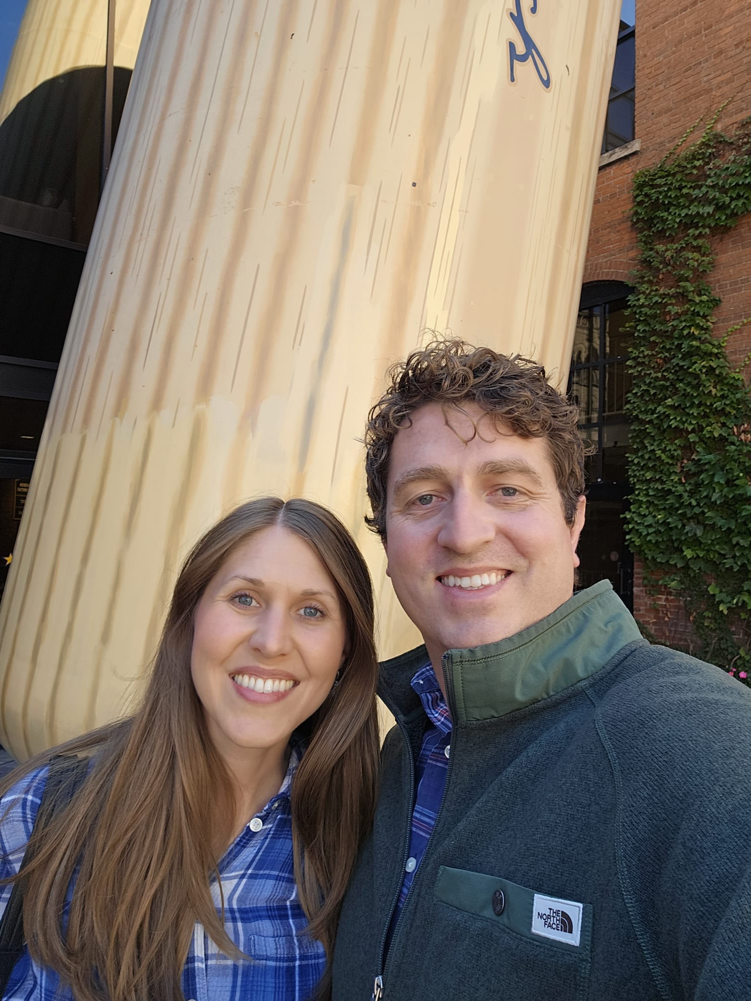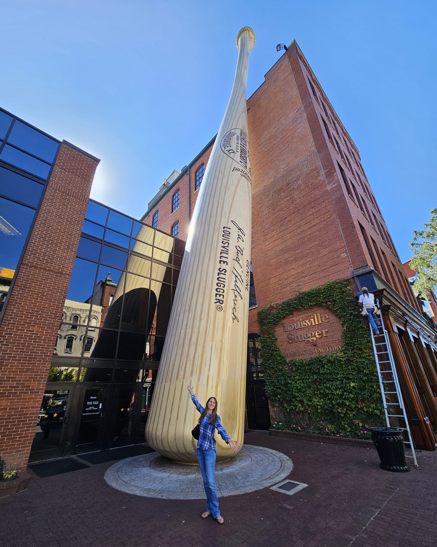 The next day, we drove into downtown Louisville to explore the city. We first stopped at the famous Churchill Downs horse racing track where the Kentucky Derby is held to snap some pictures. We didn’t go inside, but it would be so fun to dress up and go to a horse race there someday. As we were driving around the beautiful downtown and looking at all the historic buildings, we realized the Louisville Slugger baseball bat factory was there. We were so excited because Gabe grew up playing baseball and I played softball as a kid. This was one of those special stops we didn’t even know about ahead of time, but God had it planned for us. There wasn’t enough time to see the museum, but we stopped in at the gift shop to look around. One of Gabe’s favorite hobbies growing up was collecting baseball and other sports cards, so I encouraged him to buy some packs and he opened them with joy. It’s always a surprise to see which cards are inside. I love a good moment of childlike joy! After this fun stop, we drove past several bourbon distilleries, crossed over the Ohio River and headed into Indiana.