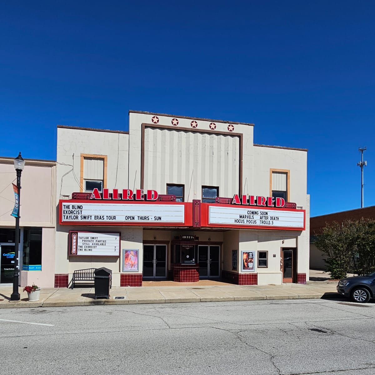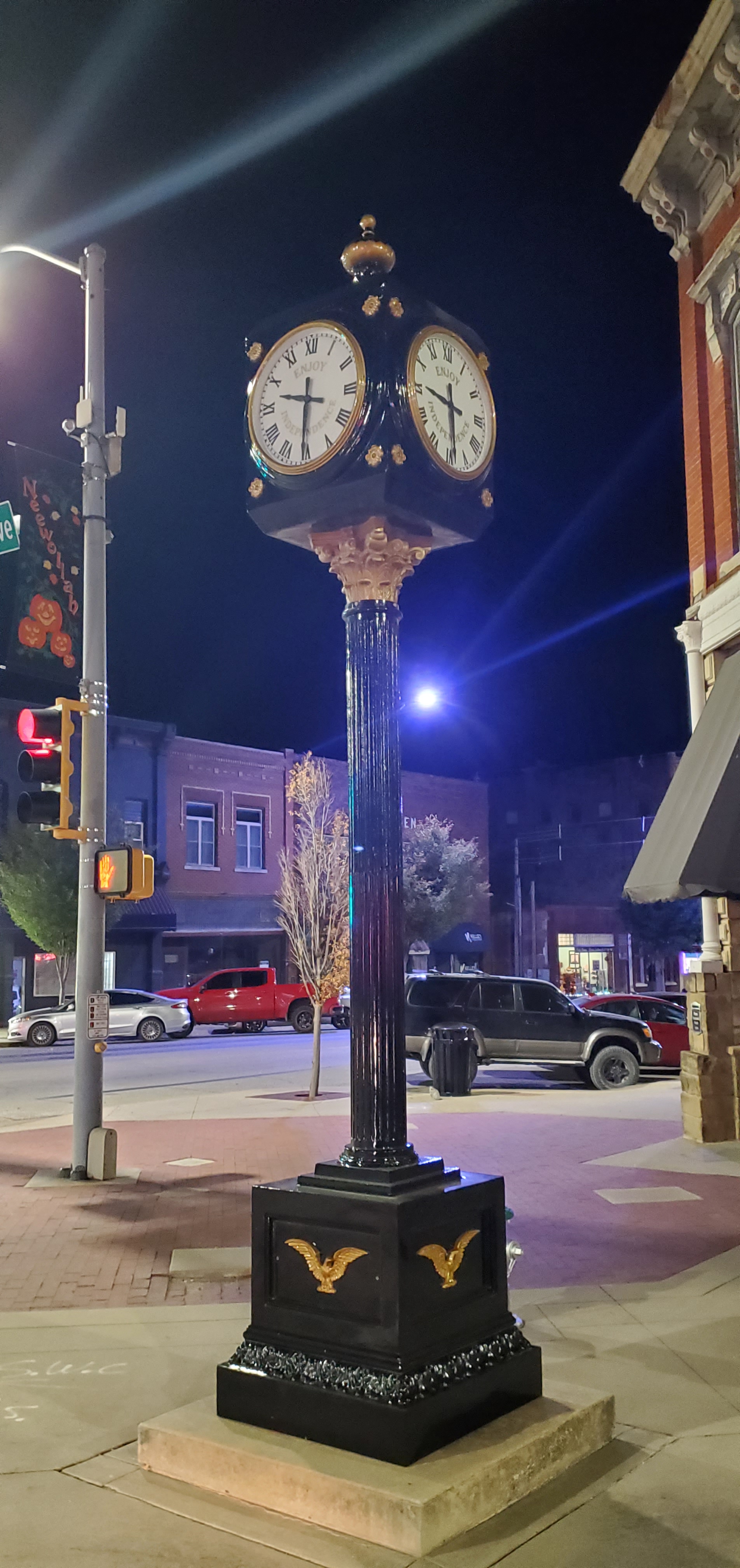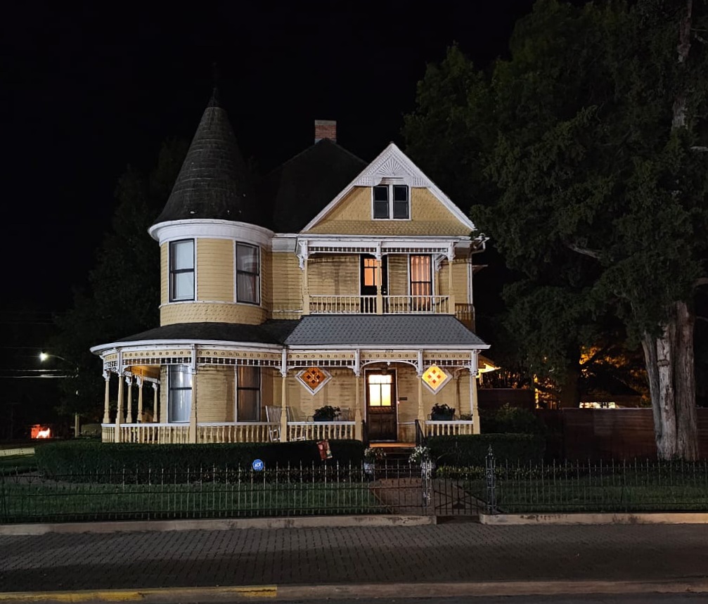 After sunset, there wasn’t much to see since we were on a small two-lane highway in a rural area for much of the drive. We passed smaller towns, but most of them were a ways away from us. The wind was really whipping that night across the landscape and against the side of the van. I really wish we could have seen the countryside during the day! We passed a historical marker for Vegetarian Creek, which I looked up and read the history. It was a sad story which didn’t end well for the people involved. We also hit our first animal on the road trip, which was a bummer. An oppossum ran right out in front of us at the wrong time. However, the real highlight of the drive through Kansas was the towns of Neodesha and Independence. They are adorable Old West towns with brick buildings. Neodesha has an incredibly gorgeous old Victorian home with a turret, and Independence has a fancy old four-way clock on a post. I would have loved to shop around Independence especially! My phone does not take great pictures at night, so most of my pictures from these towns are blurry (Gabe got a few good ones). This is one state I would like to visit again for a redo. We rushed through it too fast and didn’t get to see very much. I know there are all kinds of hidden gems there like these two towns. Hopefully, we can go back again in the future! After passing through Kansas, we crossed over into Oklahoma on our way to Tulsa.