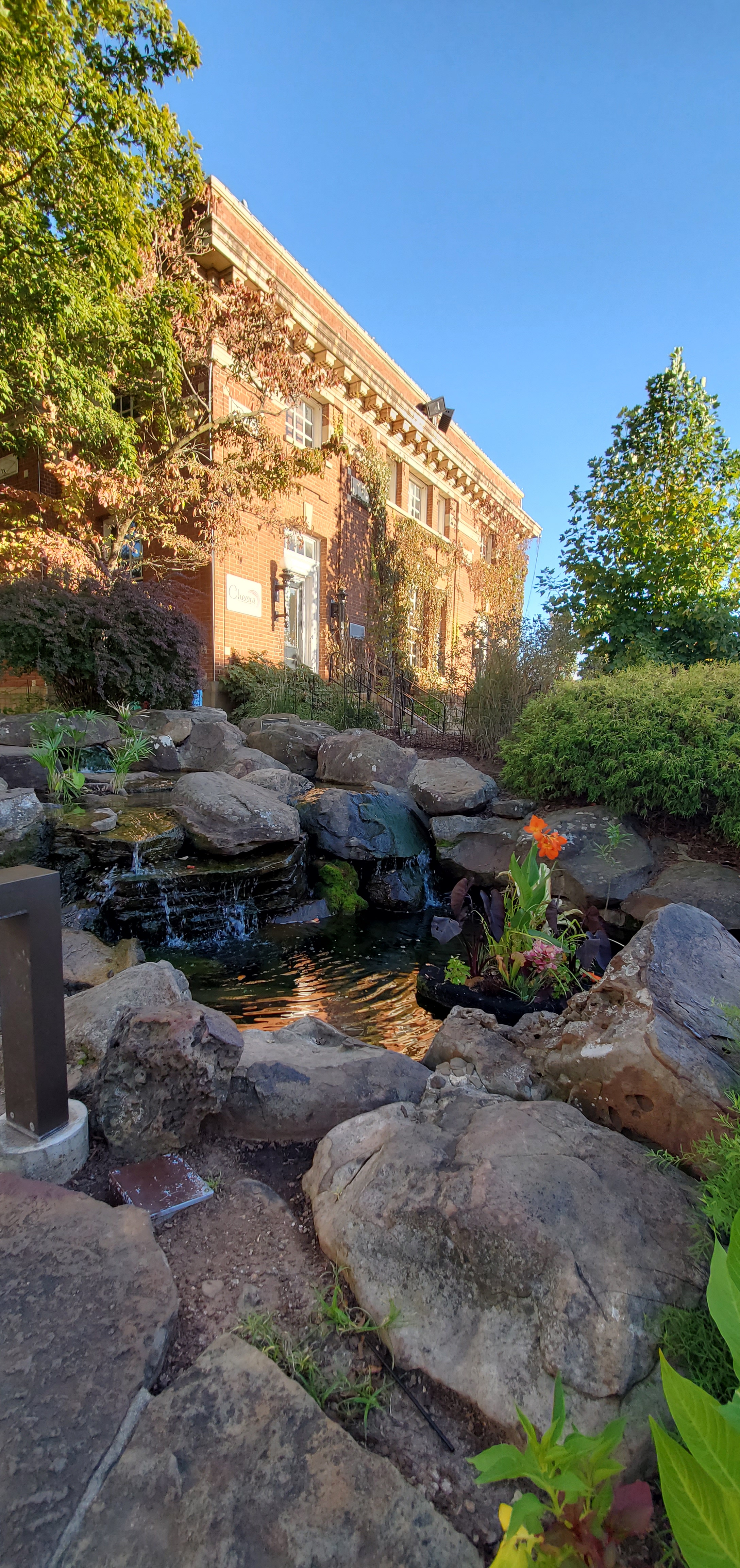 On the road trip, we crossed over from Oklahoma into the area of Siloam Springs and headed for the University of Arkansas in Fayetteville. My mom’s cousin Carolyn lives in Fayetteville and works for the Baptist Collegiate Ministry at the U of A. She invited us to come check out the beautiful campus and see what their ministry is doing to reach the students. We enjoyed meeting the pastor and hearing about their work and we shared with him about United Hive as well. As we were leaving the ministry building, Carolyn and some students demonstrated the “Hog Call” for us where they yell “Wooooo! Pig Sooie!” It’s the school’s unique sports chant with many hand motions. It’s great fun! Then Carolyn took us across the street and made Gabe rub the Razorback’s nose (remember, he’s an Alabama football fan). After that, we walked over to the Arkansas Union Building to have lunch. It was a gorgeous sunny day, so after lunch she gave us a tour around campus. We saw Old Main, which is a stunning Victorian multistory building with two clock towers on the ends. We also saw the Greek Theatre, Razorback Stadium and some pretty old homes. The University of Arkansas campus is lovely and walking around it was so refreshing! We wrapped up our tour and Carolyn drove us into downtown Fayetteville. The town square is surrounded by charming brick buildings and there’s an old post office in the center, which is now a restaurant called Cheers. A pretty flower garden with a walking path and a fountain wraps all the way around the restaurant. We stopped for some coffees at the Jammin Cafe to rest and catch up a bit. It was a wonderful day in a beautiful city! We then followed Carolyn back to her house where she graciously hosted us for the night. She made us fajitas for dinner… what a treat! After dinner, we sat and talked around the fire in her chimenea. The past few years have been especially rough for her and we felt the Lord using our time together as a blessing for us all. The next morning, Gabe was supposed to meet up with an old family friend from North Carolina named Glenn for breakfast. Glenn doesn’t live too far from Fayetteville now, but unfortunately, he got sick that morning and had to cancel. However, he was feeling well enough for a video call, so he and Gabe had a fun time catching up and reminiscing. Carolyn more than made up for Gabe’s missed breakfast by making us biscuits and gravy, fried potatoes, eggs and bacon! After breakfast, we packed up, said our goodbyes to Carolyn and left for Atkins.