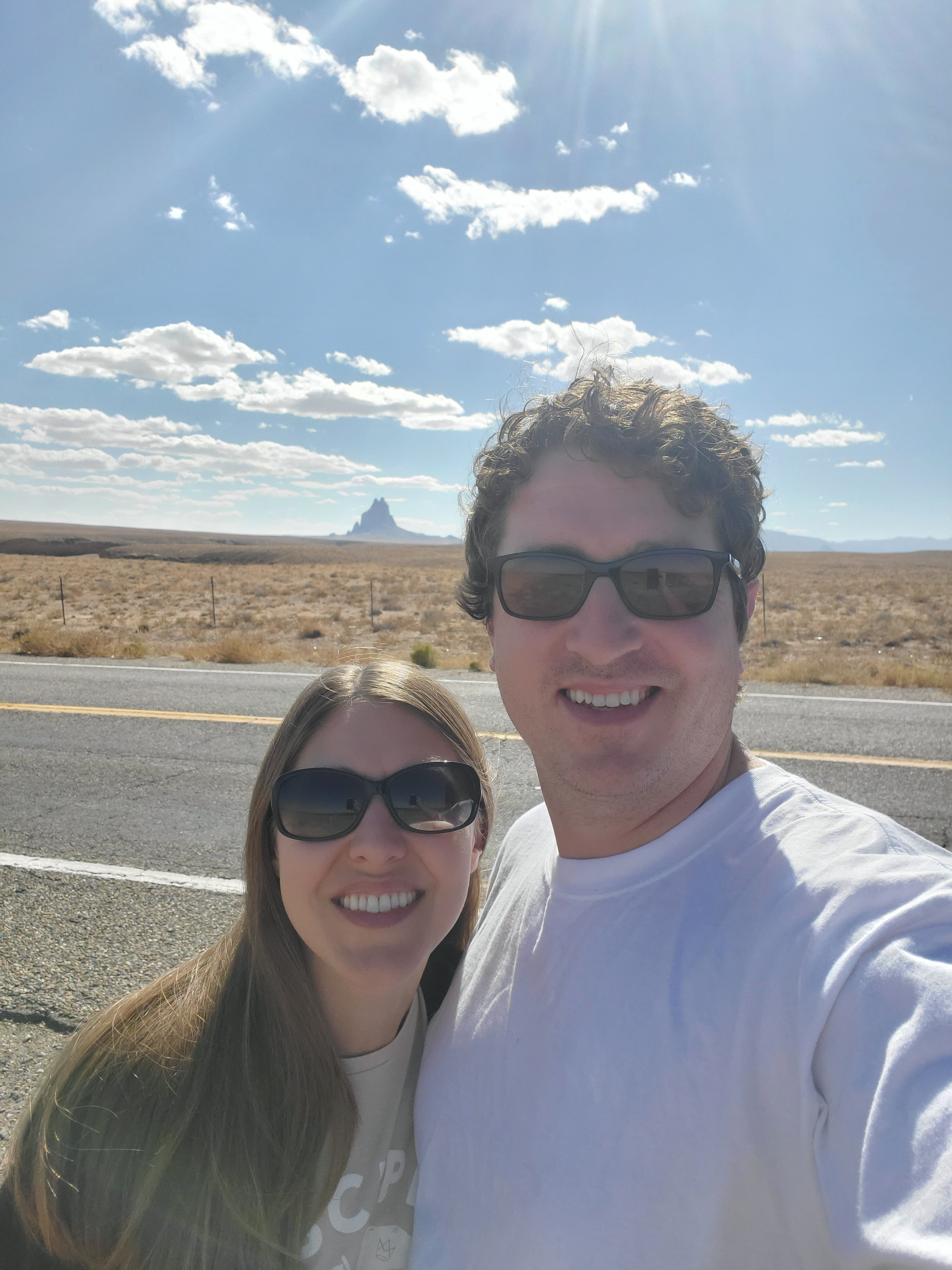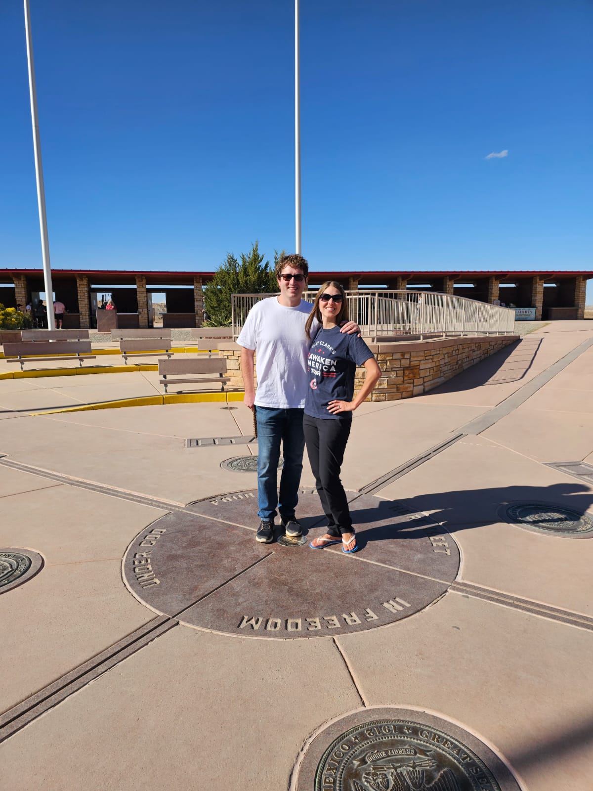 After we said our goodbyes the next morning, we drove past Ship Rock and through a small section of Arizona on our way to Four Corners Monument (where New Mexico, Colorado, Utah and Arizona meet at a point). I had been to Four Corners twice before when I was young, but Gabe had never been before. It has changed so much since I was a kid! It looks really nice now. The whole area of the monument is paved and there is a row of built-in booths for vendors and artisan crafters in each one of the states. We enjoyed walking around to all of the booths and I bought a colorful, hand-painted Christmas ornament as a souvenir. I was really craving some Navajo Indian Bread and was hoping to buy some there because I remembered getting some with my Grandpa Quinn when we visited before. To my disappointment, the bread stand was closed! This set me on a search for Navajo Indian Bread that day, and I began asking everyone and looking everywhere for it. We didn’t find any fry bread in New Mexico… but stay tuned for our adventures in Utah up next!