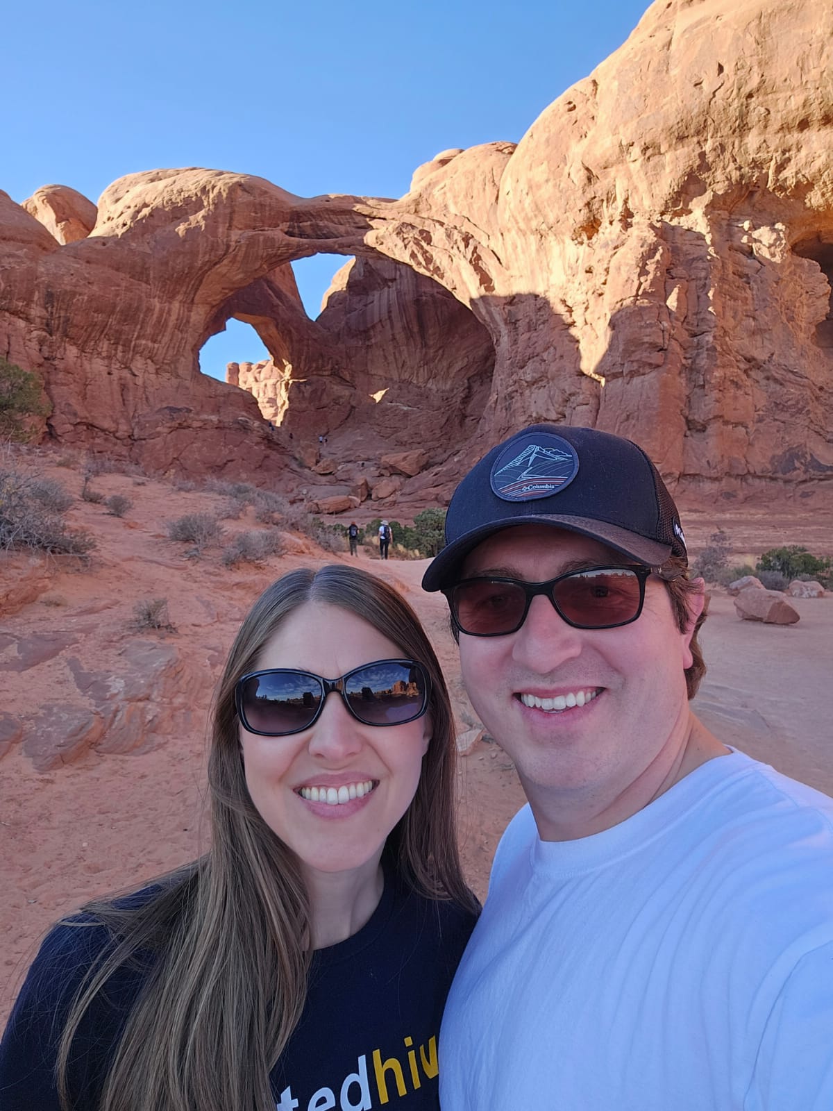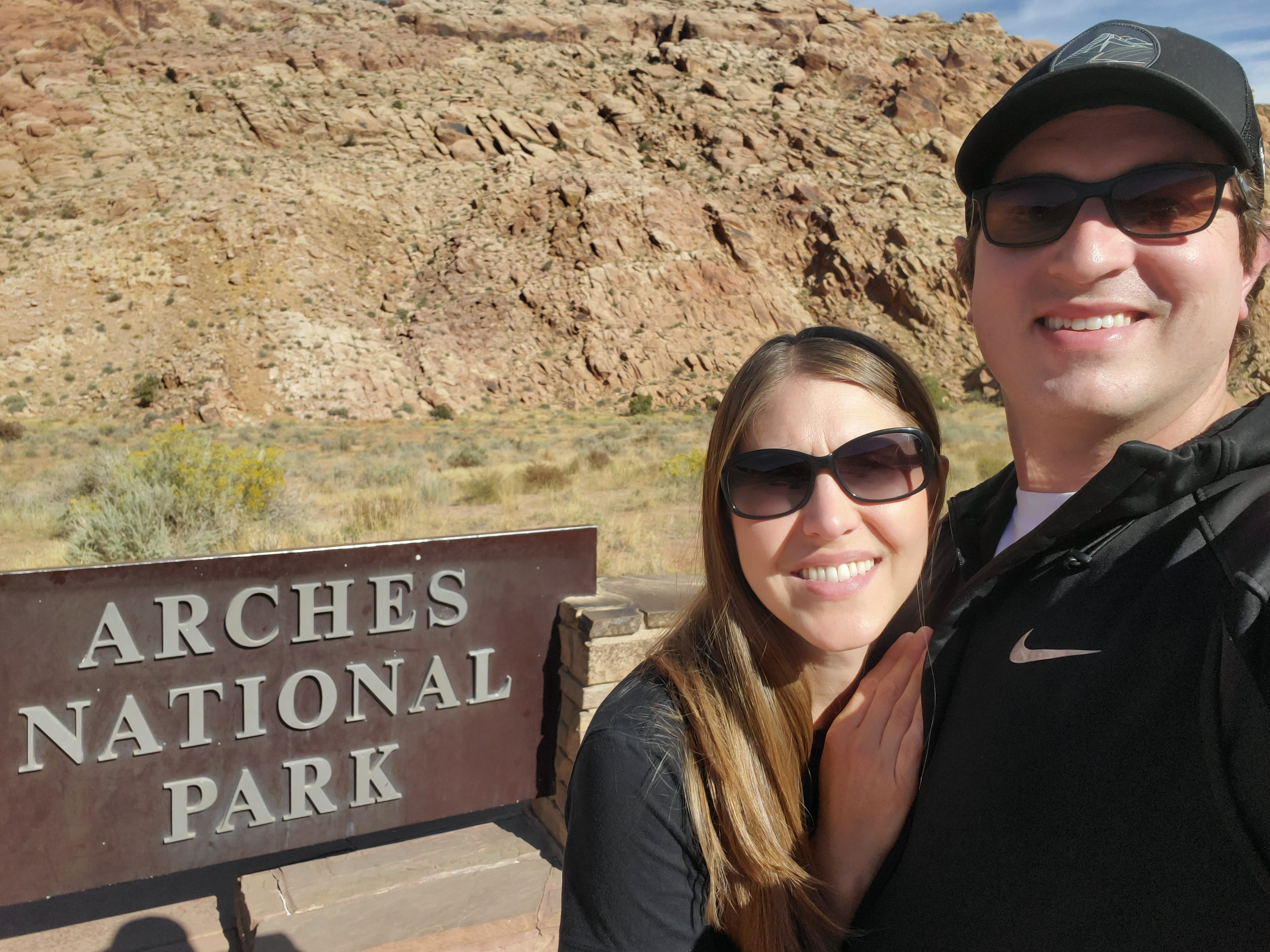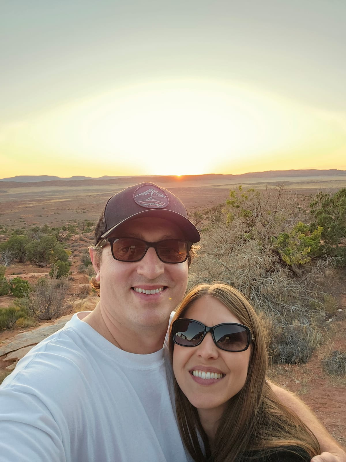 After breakfast, we drove back down to Moab to see the incredibly breathtaking Arches National Park. We loved exploring this park with its many fascinating rock stack formations, dramatic cliffs and inviting arches. After a quick stop at the visitor center, we drove up the impressive and somewhat steep road that curves its way into the park. We stopped to see the viewpoints at Park Avenue, La Sal, Balanced Rock, The Windows, Double Arch, Delicate Arch and Devils Garden. Double Arch was the most memorable because we took the short hike to the arches and climbed up into the cavernlike area underneath them. The feeling of awesome grandeur in this place is hard to describe. The stark contrast of the pink-orange arches looping across the bright blue sky makes you want to hold your breath and stop time for a moment. It truly felt like we were standing in a natural cathedral created by the hand of God. All you can do when presented with this kind of beauty is to worship the Lord who made it. If you ever visit the park, I highly recommend you take the easy hike into Double Arch for an unforgettable experience. Delicate Arch is easily the most famous arch because it’s on the Utah license plate, but it’s not easy to get to. When we reached the Delicate Arch trailhead, we found out the hike to get to the arch would take multiple hours. We simply didn’t have much daylight left, so we just took some pictures from the viewpoint instead and kept on driving so we could see the rest of the park before dark. As we were driving up to Devils Garden, the sun was close to setting and all of the arches and formations turned a bright and brilliant red-orange color. We snapped a few pictures at Devils Garden, then quickly found a spot to pull over just a short ways down the road to watch the glorious sunset. We opened the sliding door on our van and savored the sight of the yellow sun casting its last beams across the valley. It was the perfect close to a legendary day. As soon as the sun was gone, we made our way back to our KOA for the night. Arches National Park can be really busy, but if you can visit when it’s not overly crowded, it’s a wonderful experience. Moab has grown so much since I was young and has truly become a fun destination hub for outdoor adventures. Definitely visit if you can!