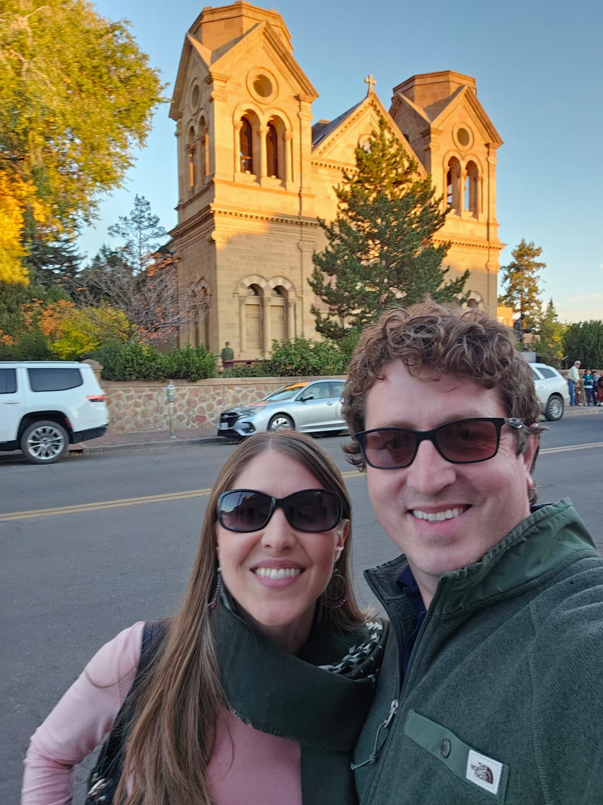 We reached Santa Fe in the early evening just in time for dinner. The golden sunset light gave a warm glow to the adorable Adobe-style city and the yellow fall leaves enhanced its beauty. I am not normally a huge fan of the Southwestern style in general, but Santa Fe is very special and it quickly made our top 10 list of favorite cities in America. While walking to find a place for dinner, we saw the gorgeous Cathedral Basilica of St. Francis of Assisi in downtown, just a block from the Santa Fe Plaza. We tried to get a table at The Shed Mexican restaurant because it had amazing reviews, but the wait was way too long for the time frame we had. We walked through long covered walkways to the Santa Fe Plaza, where we were able to quickly get a table at the Thunderbird Bar and Grill. The restaurant is on the second floor and has an outdoor balcony overlooking the plaza, so we sat outside and enjoyed the lovely view. Since it was a Saturday night, they were quite busy and our food took a very long time to get to us, so we had to get boxes for our meal right away and eat it on the road. At least the food was delicious! Downtown Santa Fe is so pretty and clean with shops, restaurants and historical significance. I wish we could have spent more time there exploring and I’d love to go back again someday. I highly recommend it if you ever get a chance to visit!