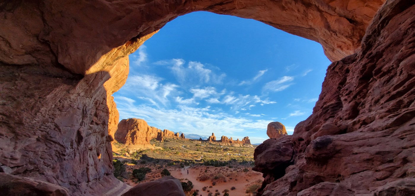 After breakfast, we drove back down to Moab to see the incredibly breathtaking Arches National Park. We loved exploring this park with its many fascinating rock stack formations, dramatic cliffs and inviting arches. After a quick stop at the visitor center, we drove up the impressive and somewhat steep road that curves its way into the park. We stopped to see the viewpoints at Park Avenue, La Sal, Balanced Rock, The Windows, Double Arch, Delicate Arch and Devils Garden. Double Arch was the most memorable because we took the short hike to the arches and climbed up into the cavernlike area underneath them. The feeling of awesome grandeur in this place is hard to describe. The stark contrast of the pink-orange arches looping across the bright blue sky makes you want to hold your breath and stop time for a moment. It truly felt like we were standing in a natural cathedral created by the hand of God. All you can do when presented with this kind of beauty is to worship the Lord who made it. If you ever visit the park, I highly recommend you take the easy hike into Double Arch for an unforgettable experience. Delicate Arch is easily the most famous arch because it’s on the Utah license plate, but it’s not easy to get to. When we reached the Delicate Arch trailhead, we found out the hike to get to the arch would take multiple hours. We simply didn’t have much daylight left, so we just took some pictures from the viewpoint instead and kept on driving so we could see the rest of the park before dark. As we were driving up to Devils Garden, the sun was close to setting and all of the arches and formations turned a bright and brilliant red-orange color. We snapped a few pictures at Devils Garden, then quickly found a spot to pull over just a short ways down the road to watch the glorious sunset. We opened the sliding door on our van and savored the sight of the yellow sun casting its last beams across the valley. It was the perfect close to a legendary day. As soon as the sun was gone, we made our way back to our KOA for the night. Arches National Park can be really busy, but if you can visit when it’s not overly crowded, it’s a wonderful experience. Moab has grown so much since I was young and has truly become a fun destination hub for outdoor adventures. Definitely visit if you can!